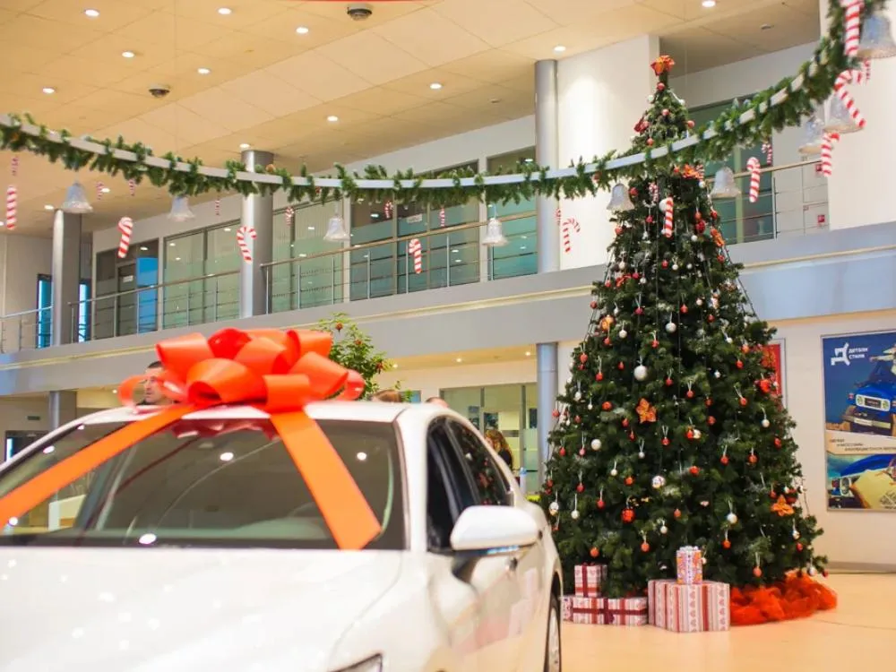 Showroom trees, wreaths, garlands, and festive displays that complement your dealershipโs branding.